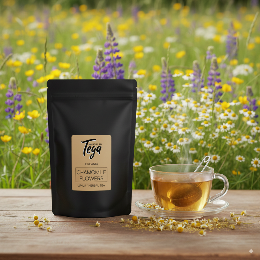 Tega Organic Chamomile Flower Tea is crafted from premium blossoms grown in Egypt’s fertile Nile Delta, a region renowned for producing some of the world’s finest chamomile. With its delicate floral aroma and naturally sweet flavor, this timeless herbal infusion has been cherished across cultures for centuries.