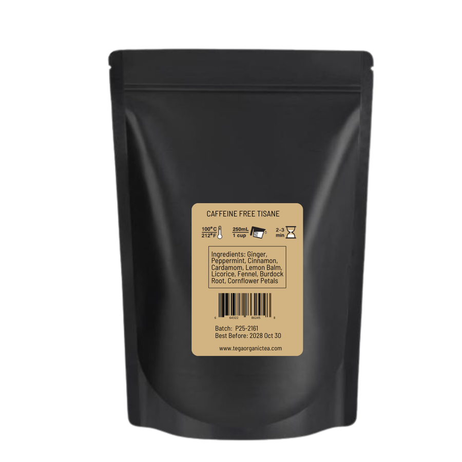 A smooth, well-rounded herbal infusion with cooling peppermint and lemon balm up front, followed by gentle warmth from ginger, cinnamon, and cardamom. Subtle natural sweetness from licorice and fennel balances earthy undertones of burdock root, finishing clean and comforting with a softly soothing mouthfeel.